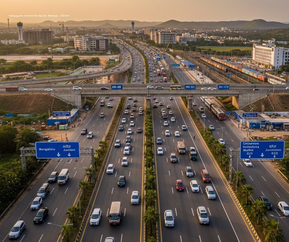 Chitradurga has strong infrastructure and connectivity, making it an important link in central Karnataka. The city is well connected by road through major national highways like NH-48, which connects Bengaluru, Hubballi, Mumbai, and Chennai, along with NH-50 and NH-173 that link it to northern Karnataka and nearby districts. Its railway station connects Chitradurga to major cities across the state, supporting both passenger travel and freight movement. Though the city does not have its own airport, Kempegowda International Airport, Bengaluru, located about 220 km away, provides air connectivity and is easily accessible by road. With ongoing highway expansions, railway upgrades, and improved urban infrastructure, Chitradurga continues to grow as a well-connected hub for trade, travel, and regional development.